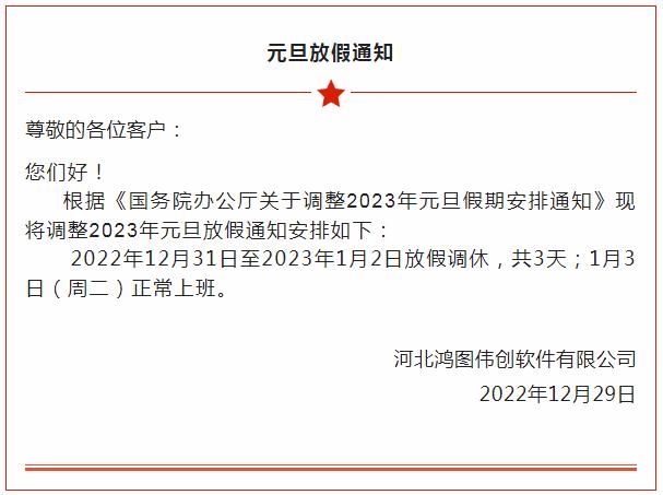 2023年鴻圖偉創(chuàng)用友軟件元旦放假及值班安排