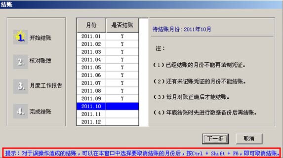 需要手工一個月一個月依次去操作,不能跨年跨月,而且需要通過快捷鍵進(jìn)行反結(jié)賬、反記賬,很復(fù)雜。