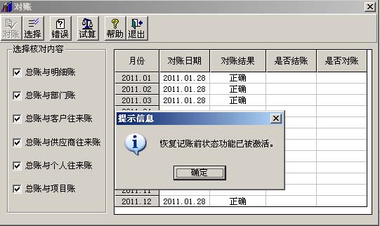 2、點擊“確定”之后,再依次點擊“總賬”-“恢復(fù)記賬前狀態(tài)”菜單。