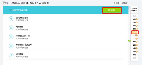 可以做到一鍵跨月跨年結(jié)賬和反結(jié)賬,中間那些曲折的過程根本不存在!比如:2024年4月已結(jié)賬,想反結(jié)賬2023年10月,直接選2023年10月,點反結(jié)賬,即可一鍵反結(jié)賬至2023年10月。也不用記那些復(fù)雜的快捷鍵!
