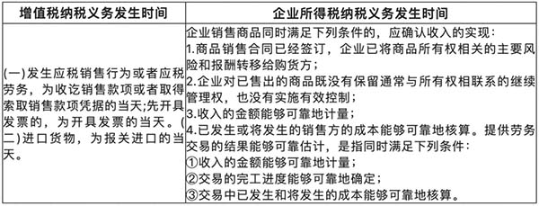 增值稅和企業(yè)所得稅是兩個不同的稅種,其收入確認(rèn)在時間是存在差異的。一般規(guī)定如下: