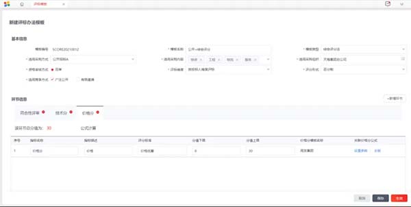 此外,為了方便快速編制項(xiàng)目評(píng)分規(guī)則,系統(tǒng)內(nèi)置了智能評(píng)分規(guī)則模板庫(kù),招標(biāo)方案編制時(shí)可以直接引入,簡(jiǎn)化了規(guī)則制定的過(guò)程,提升了整體的評(píng)標(biāo)效率和管理水平。