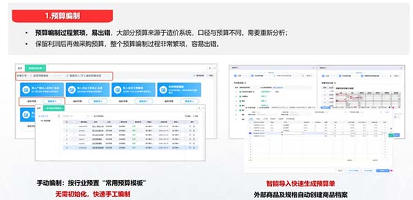 預(yù)算管控:在項(xiàng)目啟動(dòng)前,企業(yè)需要制定詳細(xì)的預(yù)算計(jì)劃,包括事前預(yù)算、事中控制、事后分析。在預(yù)算編制過(guò)程中,好業(yè)財(cái)ERP系統(tǒng)支持手工編制,更支持智能導(dǎo)入,并對(duì)各項(xiàng)支出進(jìn)行實(shí)時(shí)監(jiān)控。通過(guò)預(yù)算與實(shí)際成本的對(duì)比分析,企業(yè)能夠及時(shí)發(fā)現(xiàn)成本超支風(fēng)險(xiǎn),并采取相應(yīng)的控制措施。