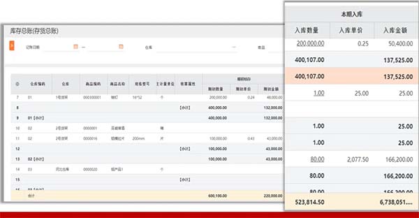 根據(jù)倉庫、商品、規(guī)格型號、核算屬性等,精細記錄管理庫存成本總賬、明細賬。