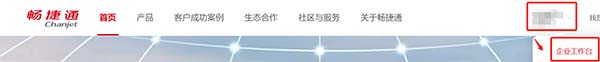 1、運行瀏覽器,輸入www.chanjet.com,點擊右上方的登錄按鈕,錄入管理員賬號密碼進(jìn)行登錄,然后再點擊頭像位置,選擇【企業(yè)工作臺】;