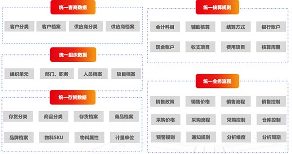 解決多組織混亂的核心,在于 “統(tǒng)一標(biāo)準(zhǔn)”。普魯?shù)弦劳?用友YonSuite 搭建集團(tuán)型統(tǒng)一平臺,從 “客商、組織、存貨、核算規(guī)則、業(yè)務(wù)流程” 五大維度實現(xiàn)標(biāo)準(zhǔn)化,為后續(xù)協(xié)同奠定基礎(chǔ):