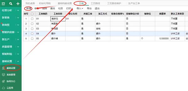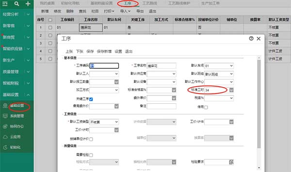 1、工序檔案中錄入標準工時數(shù)據(jù):基礎設置-工序-新增