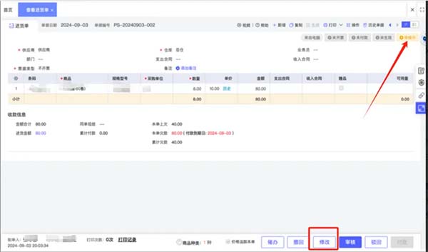 增加審批過程支持修改功能后,單據(jù)底部增加了“修改”按鈕: