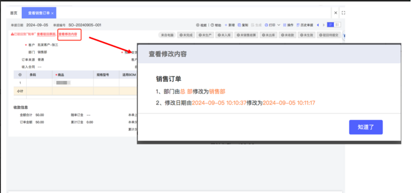 修改后支持查看修改內(nèi)容