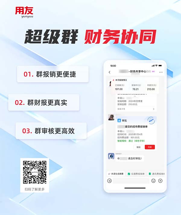 在財務(wù)協(xié)同方面,超級群集成了財務(wù)管理功能,讓報銷、審核等流程變得更加簡單高效。成員可以直接在群內(nèi)提交報銷申請,系統(tǒng)自動識別并填寫報銷信息,大大簡化了報銷流程。財務(wù)人員可以在群內(nèi)實時審核報銷單,及時反饋審核結(jié)果。此外,超級群還支持財務(wù)報表的實時查看,讓管理層隨時掌握企業(yè)財務(wù)狀況,做出更加明智的決策。