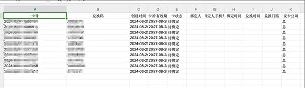 (3)導(dǎo)出的excel里,卡號(hào)、兌換碼如下: