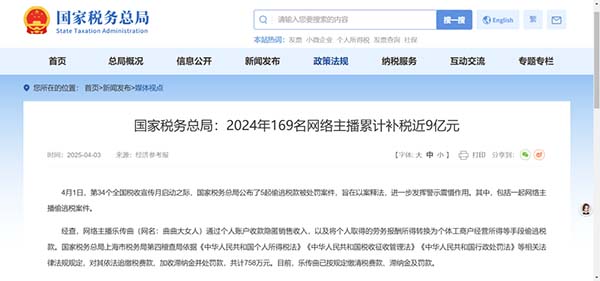 近日,據(jù)用友軟件了解,國家稅務(wù)總局發(fā)布重磅數(shù)據(jù):2024年稅務(wù)部門對169名網(wǎng)絡(luò)主播開展稅務(wù)檢查,累計查補(bǔ)稅近9億元,并曝光多起典型案件,引發(fā)行業(yè)震動。這場“稅務(wù)風(fēng)暴”不僅揭開了直播行業(yè)偷逃稅的冰山一角,更為所有從業(yè)者敲響了警鐘——網(wǎng)絡(luò)不是法外之地,偷稅漏稅終將付出代價!