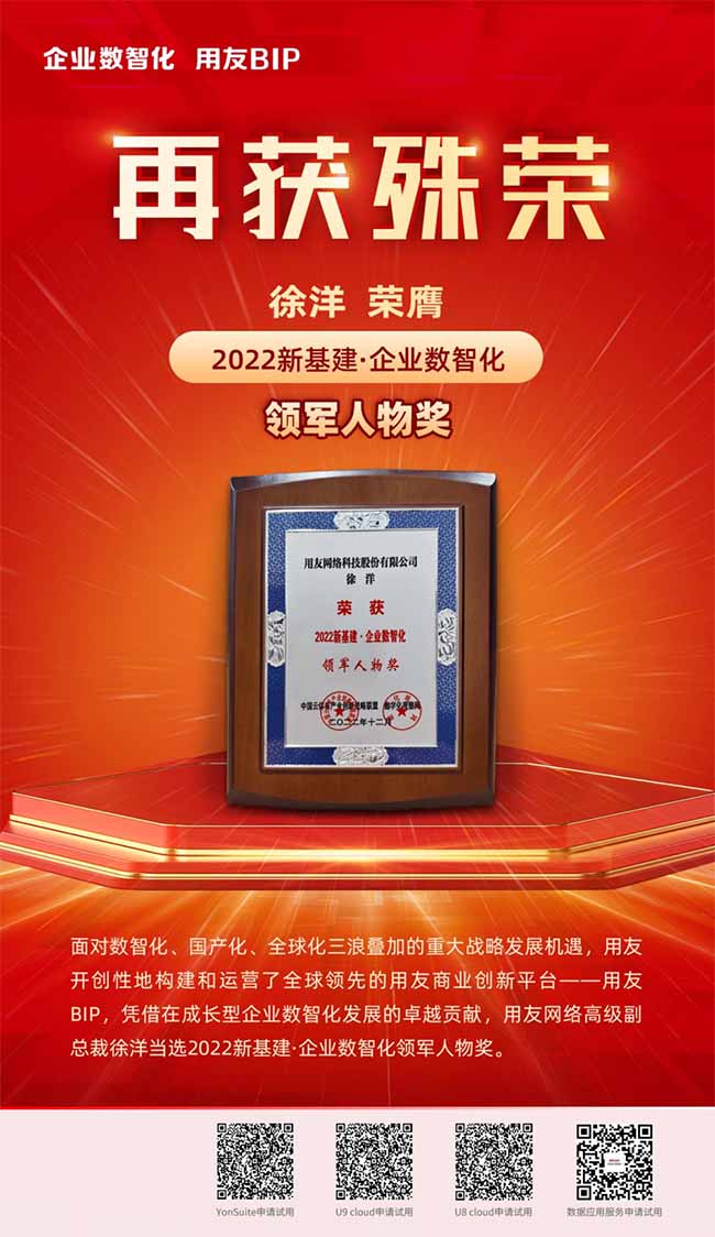 今年1月,國(guó)務(wù)院印發(fā)的《“十四五”數(shù)字經(jīng)濟(jì)發(fā)展規(guī)劃》明確提出,到2025年,數(shù)字經(jīng)濟(jì)核心產(chǎn)業(yè)增加值占國(guó)內(nèi)生產(chǎn)總值比重達(dá)到10%;展望2035年,力爭(zhēng)形成統(tǒng)一公平、競(jìng)爭(zhēng)有序、成熟完備的數(shù)字經(jīng)濟(jì)現(xiàn)代市場(chǎng)體系,數(shù)字經(jīng)濟(jì)發(fā)展水平位居世界前列。依托國(guó)家政策紅利,面對(duì)數(shù)智化、國(guó)產(chǎn)化、全球化三浪疊加的重大戰(zhàn)略發(fā)展機(jī)遇,用友開(kāi)創(chuàng)性地構(gòu)建和運(yùn)營(yíng)了全球領(lǐng)先的用友商業(yè)創(chuàng)新平臺(tái)——用友BIP,憑借在成長(zhǎng)型企業(yè)數(shù)智化發(fā)展的卓越貢獻(xiàn),用友網(wǎng)絡(luò)高級(jí)副總裁徐洋當(dāng)選2022新基建·企業(yè)數(shù)智化領(lǐng)軍人物獎(jiǎng)。